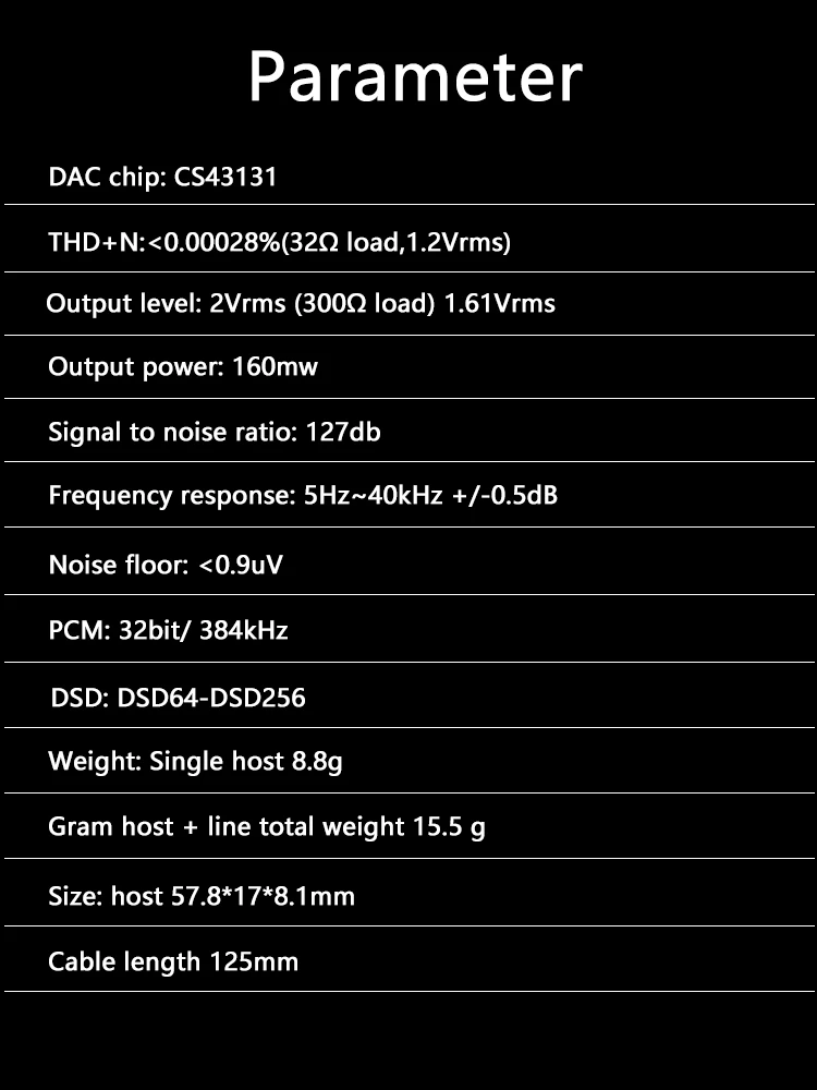 DAC CS43131Amplificador de Auriculares Hi-Res