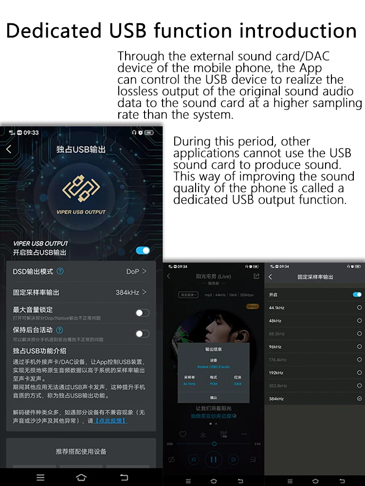 La velocidad de muestreo es de 384khz, lo que significa que se recopilan 384.000 señales eléctricas de sonido por segundo para grabar. Cuanto mayor sea la tasa de muestreo, más realista será el sonido y mejor será el rendimiento en vivo.