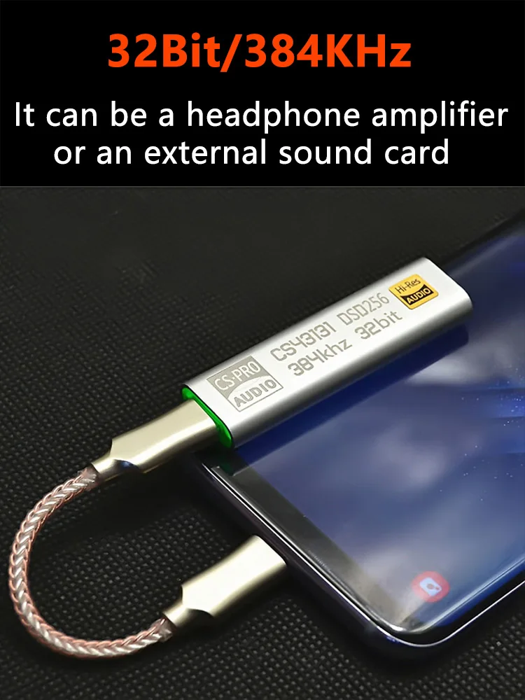 DAC amplificador de auriculares CS43131 DSD256 decodificación tarjeta de sonido externa USB 32Bit 384KHz tipo-c a 3,5 MM decodificación adaptador Audio Amp